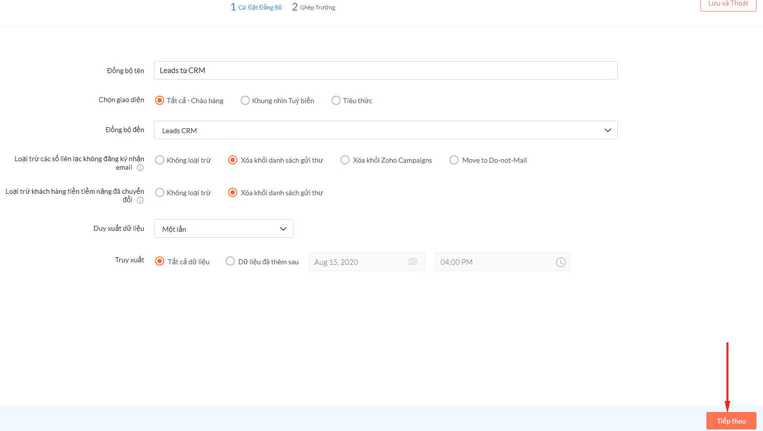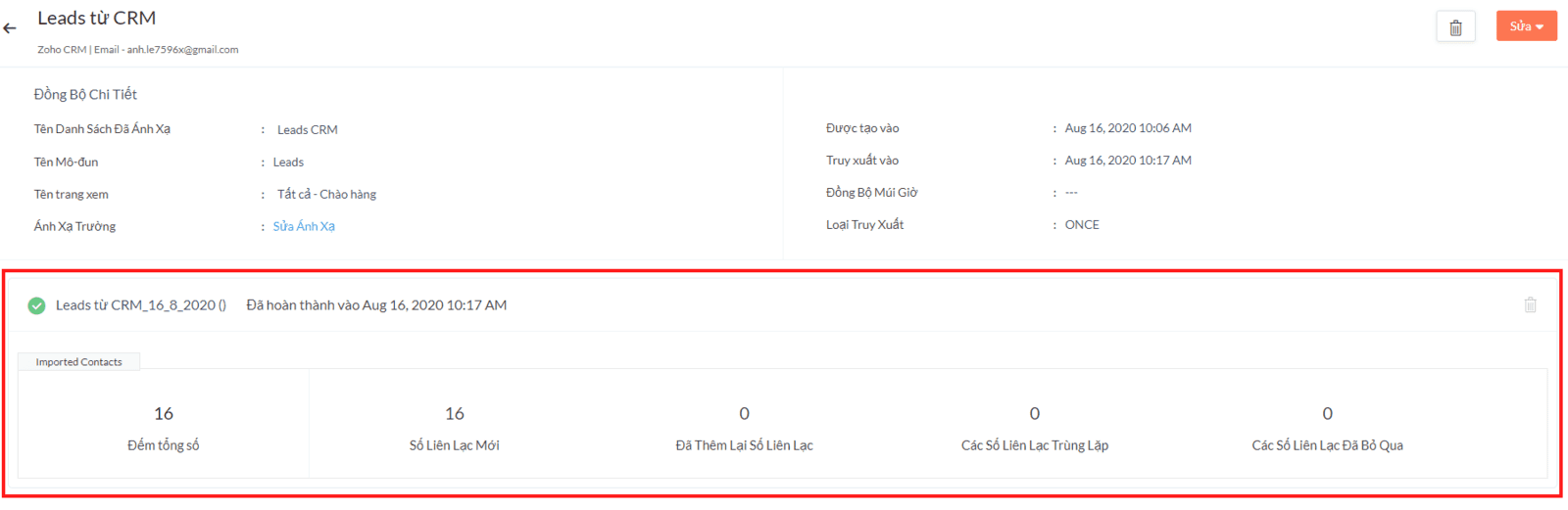 - Đồng bộ ngay lập tức : Thiết lập đồng bộ hóa ngay lập tức để tự động nhập các bản ghi của bạn ngay khi các bản ghi mới được thêm vào CRM của bạn.