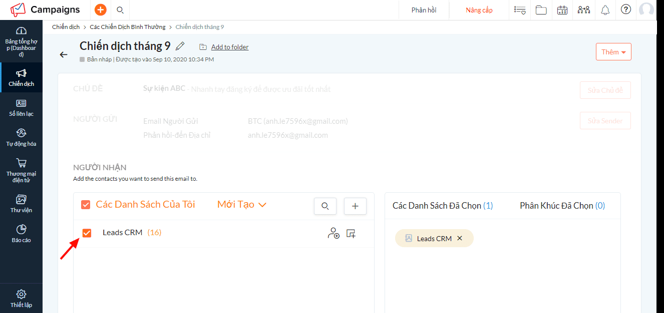 - Các thông báo: Bật công tắc Cho phép thông báo email để nhận các báo campaign được gửi về email của bạn hoặc người dùng trong tổ chức của bạn.