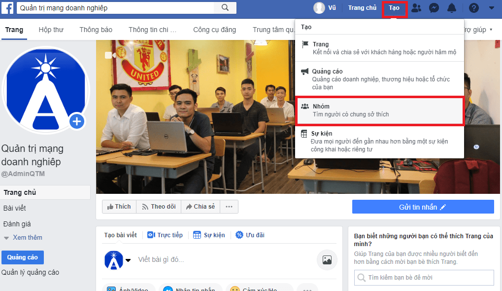 Bước 1. Đăng nhập tài khoản Facebook. Sau đó Tạo -> Nhóm