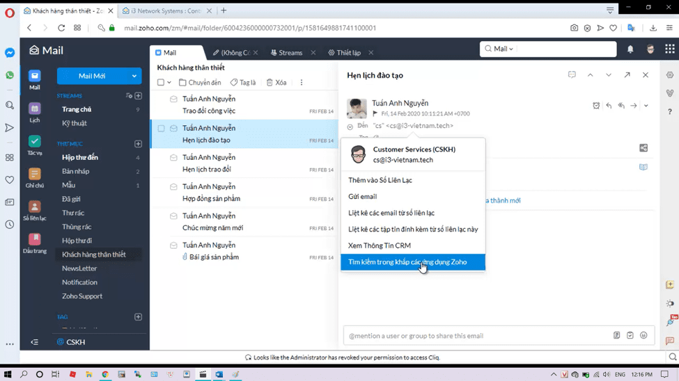 Chúng ta có thể xem thông tin của khách hàng trên zoho CRM cũng như các ứng dụng khác của Zoho