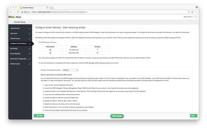 - Việc định cấu hình Gửi email có thể được thực hiện bằng cách thêm Bản ghi MX của bạn. Bạn sẽ chỉ có thể nhận email trong hộp thư Zoho của mình sau khi bạn thêm Bản ghi MX.,
